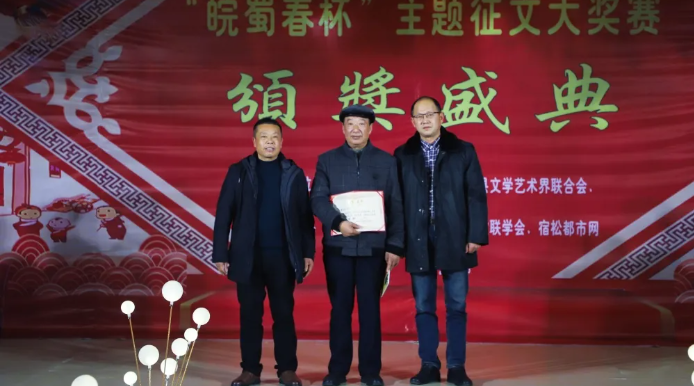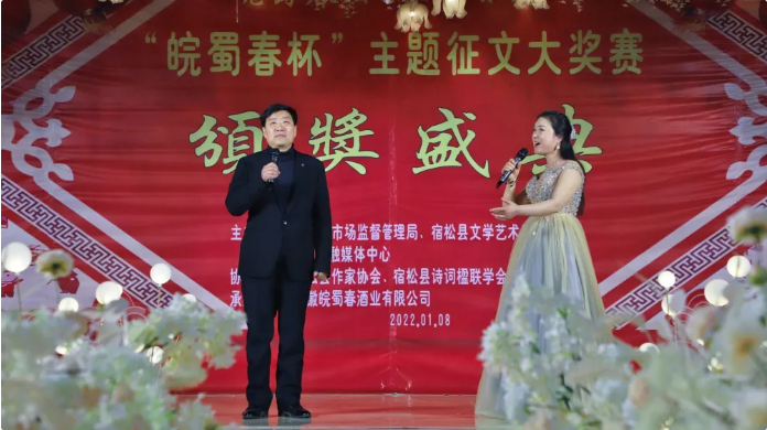 1月8日,由宿松縣文聯、宿松縣融媒體、宿松縣市場監督管理(lǐ)局共同舉辦的(de)皖蜀春杯征文頒獎盛典在皖蜀春酒業宴會廳隆重舉行。